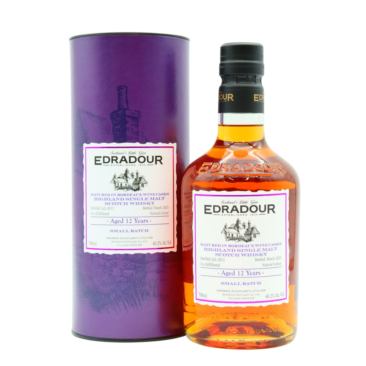 Distilled at Edradour in 2012, this single malt was matured exclusively in 1st fill Bordeaux hogsheads for 12 years. It is non-chill filtered and natural in colour.