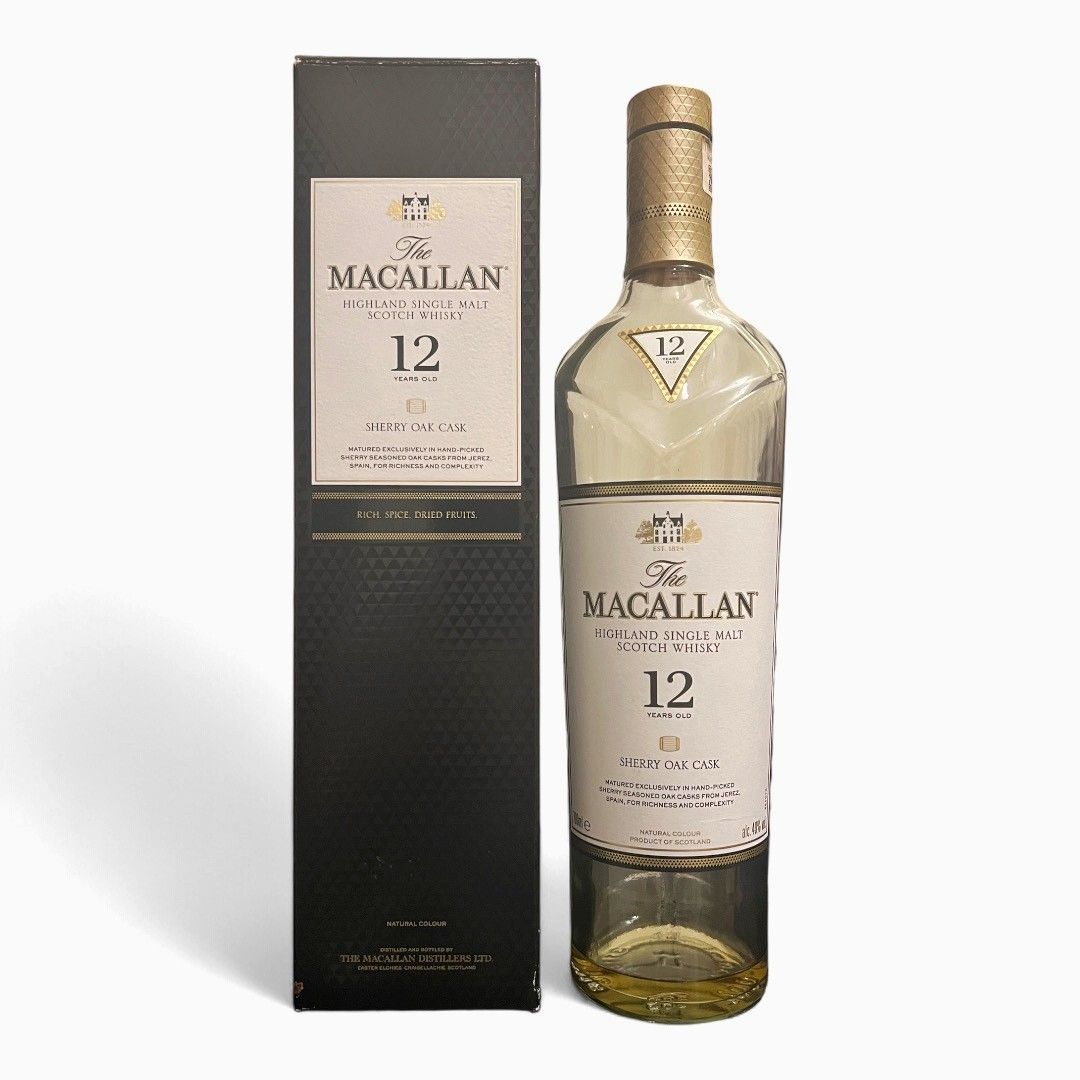 The Macallan 12 Year Old Sherry Oak is a single malt Scotch whisky is aged for a minimum of 12 years in oak casks that have been previously used to mature sherry, from Jerez, Spain. It is bottled at 40% ABV and is considered a classic expression of The Macallan's sherry-cask matured whiskies. Bottled at 40% ABV and is non-chill filtered. Deliciously smooth, with rich dried fruits and sherry.