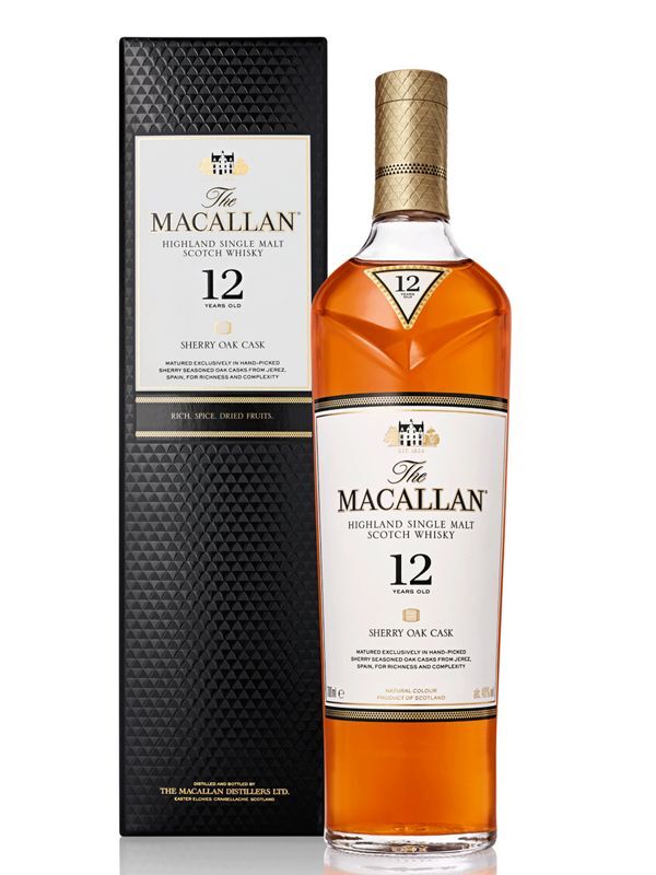 The Macallan 12 Year Old Sherry Oak is a single malt Scotch whisky is aged for a minimum of 12 years in oak casks that have been previously used to mature sherry, from Jerez, Spain. It is bottled at 40% ABV and is considered a classic expression of The Macallan's sherry-cask matured whiskies. Bottled at 40% ABV and is non-chill filtered. Deliciously smooth, with rich dried fruits and sherry.