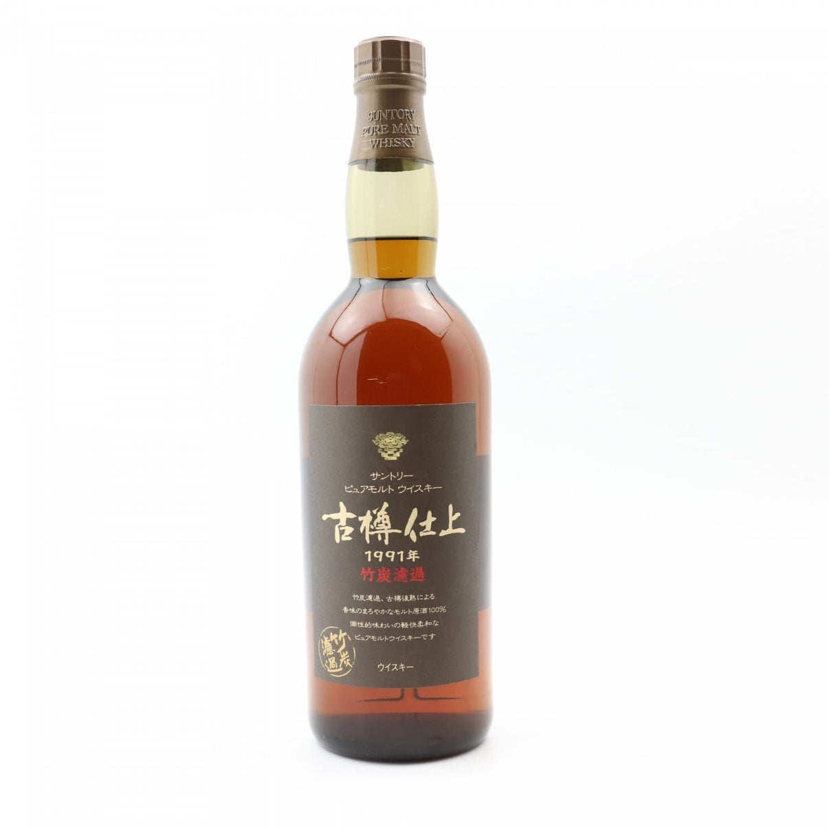 This is a follow-up bottling to the Suntory 1981 Kioke Shikomi, and was distilled in 1991. "Furudaru Shiage" means "old barrel finish", and the red characters on the label translates to "filtered through bamboo charcoal".