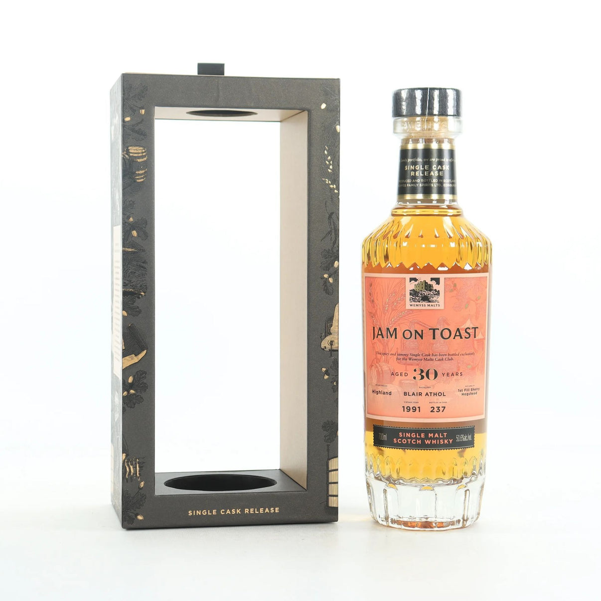 Blair Athol 30 Year Old (1991) Jam On Toast (Wemyss Malts) 70cl1 of 273 bottles produced from a single cask.This spicy single cask is from the Highland distillery of Blair...