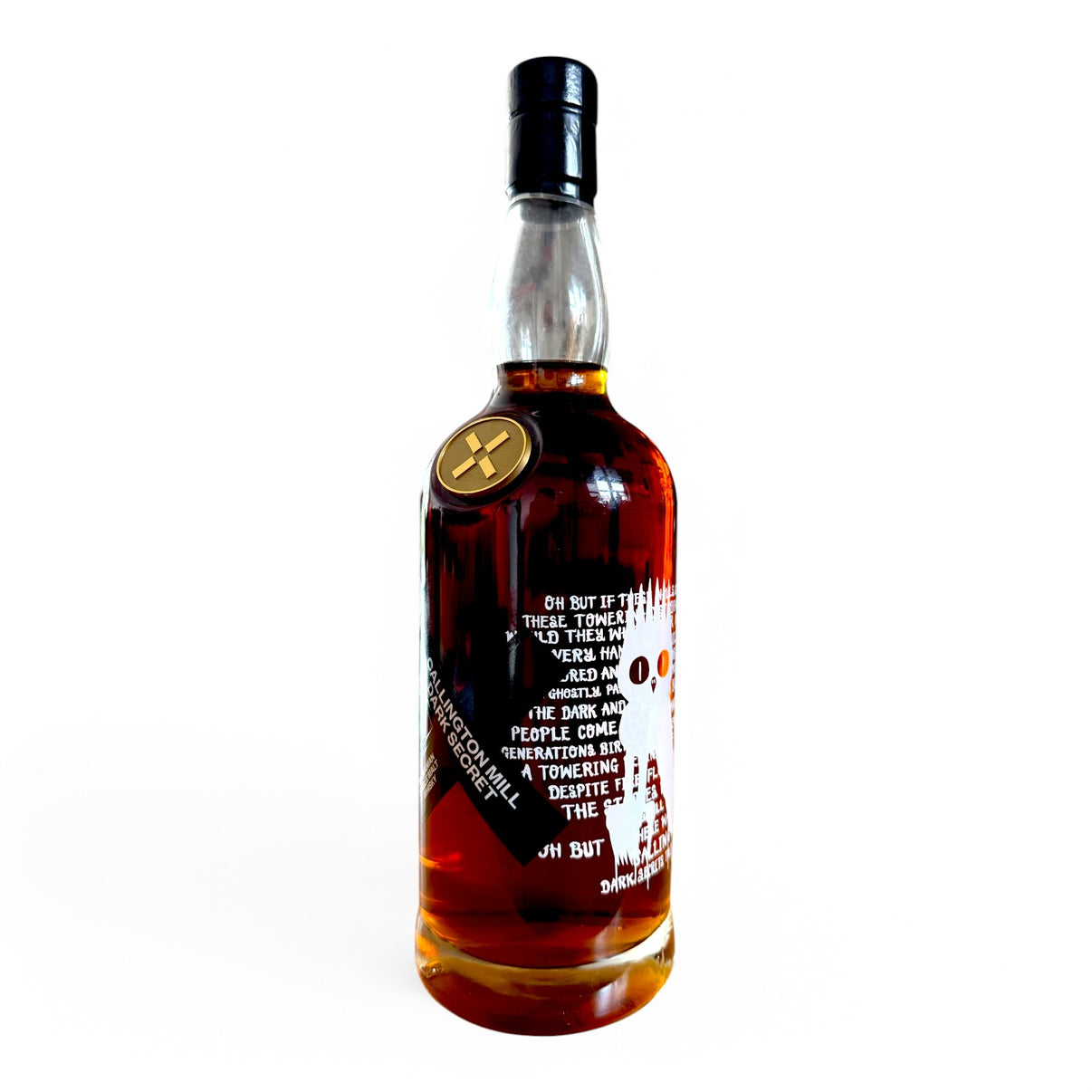 This limited release presents the unspoken stories of the past through an innovative blend of tradition and modernity. Each bottle of the limited release is adorned with Dscreet's raw, vivid artistry through a heavy screen print applied directly to the bottle, with an 'X' motif serving as an emblem of this collaboration. The accompanying canister subtly shares the mill's manifesto in a black-on-black design. Dscreet's distinctive, ghostly imagery brings a whole new dimension to the whisky experience. His work breathes life into the "dark secrets" of Callington Mill, ensuring that the silent tales of the towering mill continue to be told in a new light.