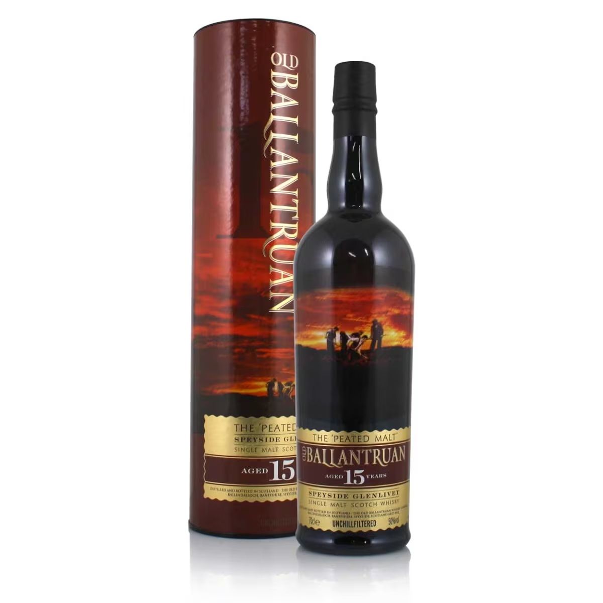 Old Ballantruan is a line of heavily peated single malt Scotch whiskies from the Tomintoul Distillery in the Speyside region. Named after the Ballantruan spring, which provides the distillery's water, these whiskies offer a smoky, earthy, and creamy flavor profile, contrasting with the typical smooth Speyside style. The range includes a no-age-statement "Smoky Original" and expressions like 10-year-old and 15-year-old versions, all bottled at a robust 50% ABV and without chill-filtration.