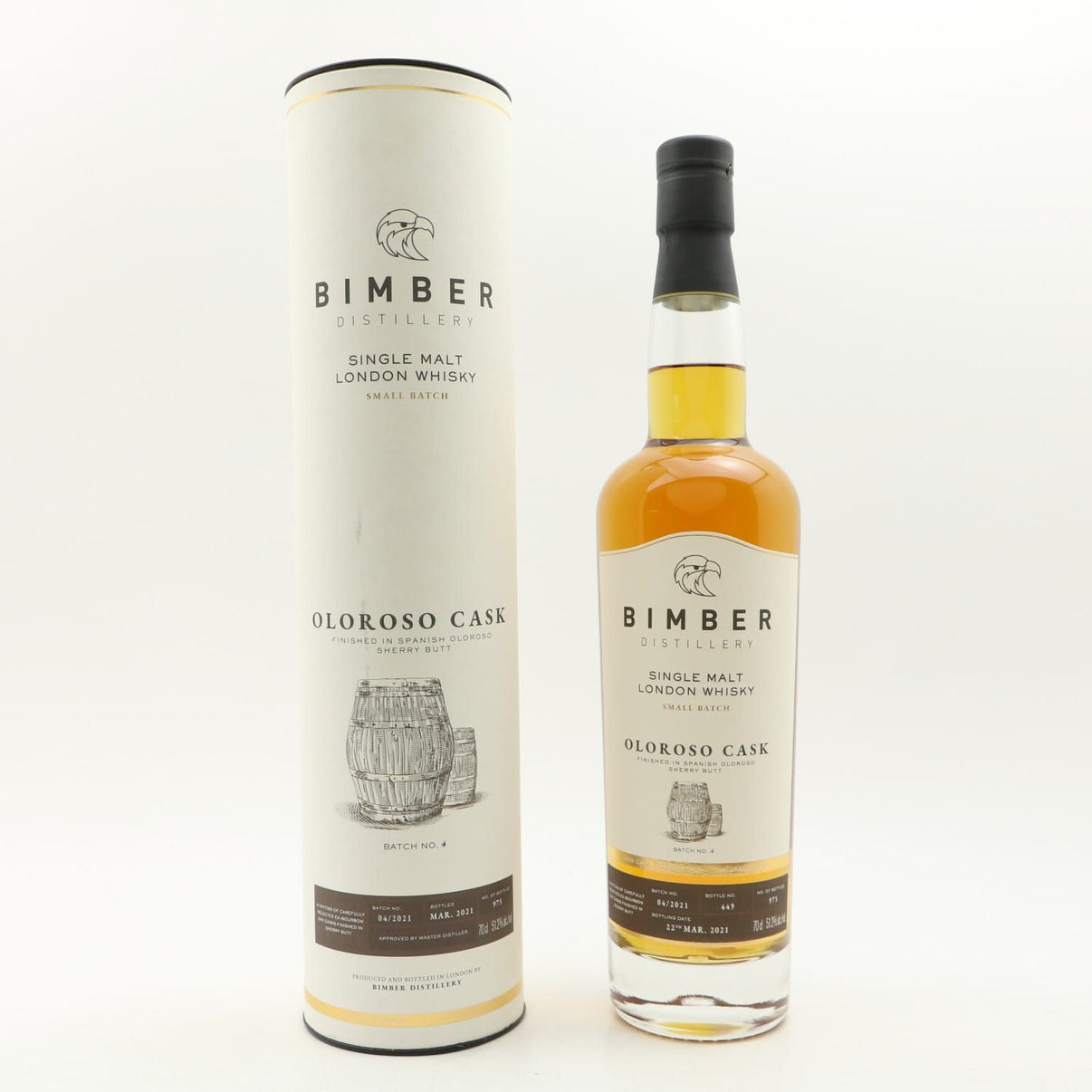 Bimber Ex-Oloroso Cask Small Batch #4 (2017-2021) 70cl1 of 975 bottles producedBimber ex-Oloroso Sherry Cask Batch No.4 was distilled in 2017 and then stored in fresh bourbon casks. The whisky...