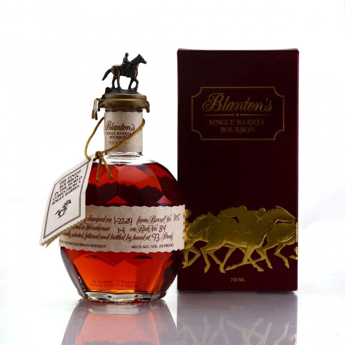 Label – the Takara Red label has a different color for the handwritten portions and the printed portions of the label. Both are in a light brown color compared to the black color of standard Blanton’s. The paper neck label on the Takara Red bottle has Japanese script underneath the words “Blanton’s Single Barrel Bourbon.” The script’s Japanese characters spell out the word “Whiskey.” One interesting similarity is that Takara Red is bottled in a 750ml bottle rather than a 700ml version like a lot of the export versions of Blanton’s out there